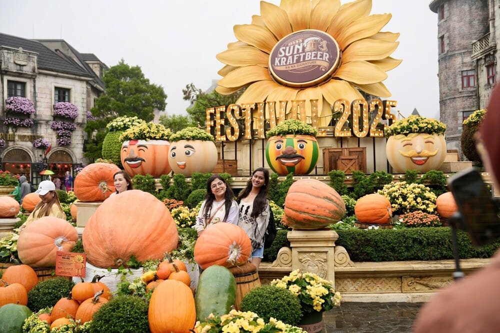 Điểm nhấn thu hút khách dịp lễ Quốc khánh năm nay tại Bà Nà là Quảng trường Vĩnh Cửu được trang hoàng rực rỡ với gần 10 tấn bí ngô tươi, tạo nên khung cảnh mùa thu vàng vô cùng ấn tượng.