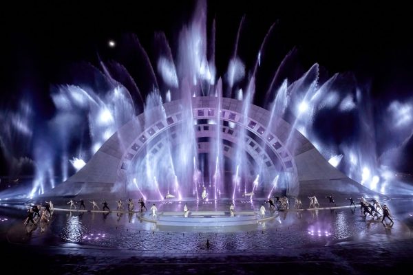 “Nụ Hôn Giữa Ngàn Sao” là màn trình diễn nhạc nước và nghệ thuật đa phương tiện quy mô lớn, kết hợp giữa các yếu tố tưởng tượng và văn hóa bản địa, tạo ra một trải nghiệm đầy ấn tượng và cuốn hút cho khán giả. Màn trình diễn này sử dụng công nghệ ánh sáng, âm thanh và các hiệu ứng đặc biệt để tạo ra những hình ảnh ngoạn mục, mang lại cảm giác kỳ diệu cho người xem.